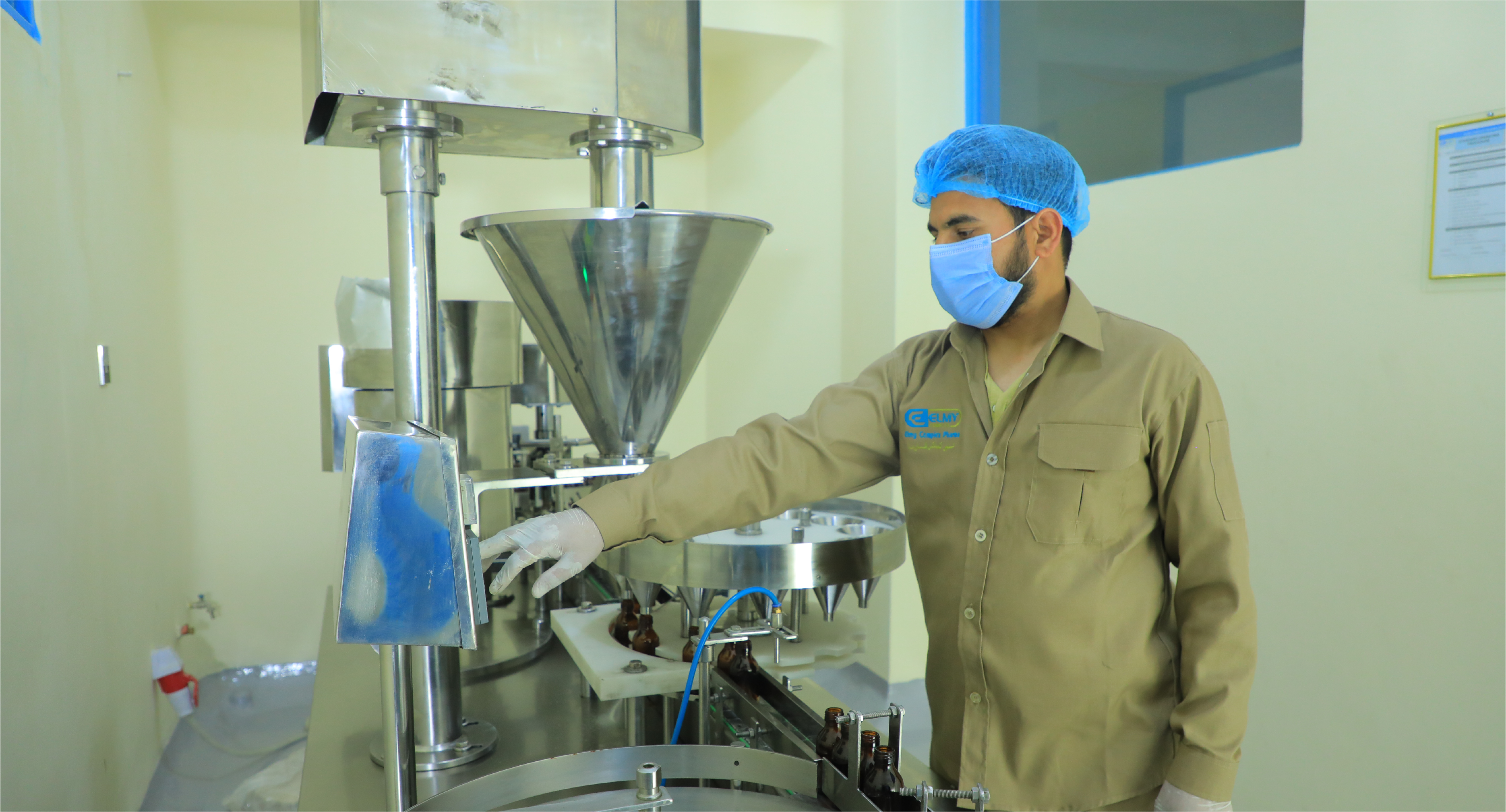 رئیس این فابریکه محترم داکتر صاحب میرویس علمی میباشد که یک شخص مسلکی و با تجربه هست و در تشکیل تیم مدیریتی ما افراد و اشخاص با تجربه و مسلکی وجود دارد، همچنان ما چند نفر مسلکی از بیرون کشور استخدام نموده ایم تا برای کارمندان داخلی ما در بخش های مربوطه ترننگ بدهند. در مجموع حدود (۱۱۰) نفر کارمند در حال حاضر در این فابریکه مصروف کار هستند. و هدف ایجاد این فابریکه تولید ادویه باکیفیت و عرضه آن در بازار به قیمت مناسب میباشد.